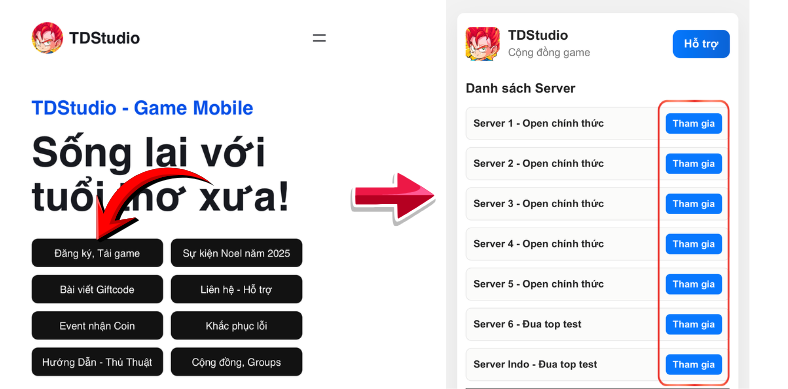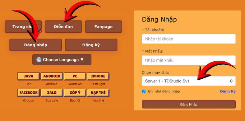 Bước 2: Vào trang chủ server game